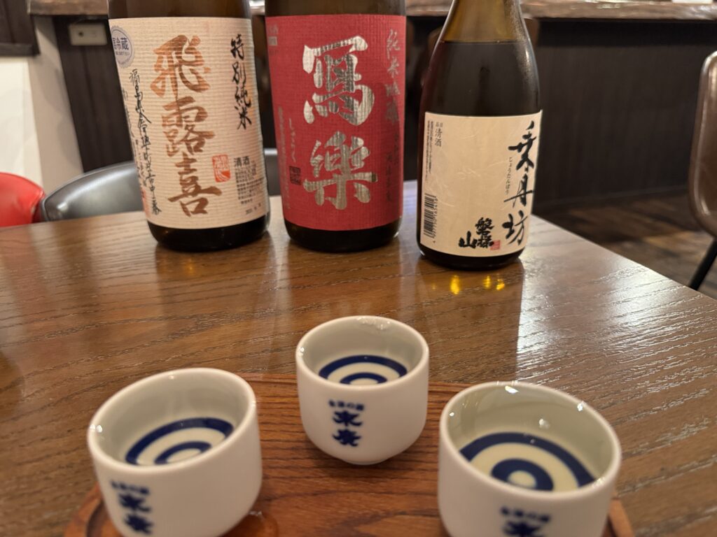 ウェルカムドリンクで日本酒をいただき福島へきた実感。