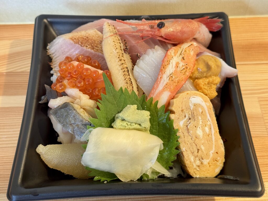 いしむしろのざる蕎麦をいただいた後、縁の海鮮丼をテイクアウト。