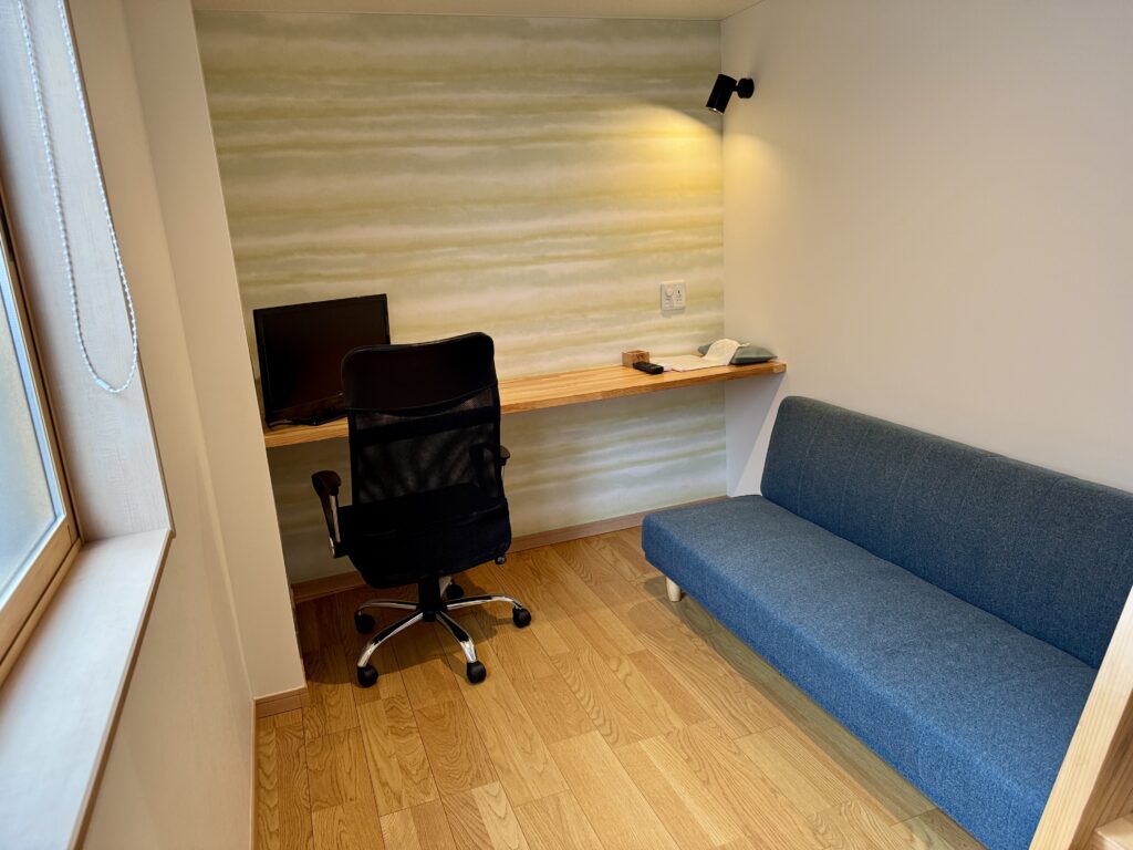 部屋(りんどう)の作業環境はとても快適。ただしWi-Fiは弱い時あり