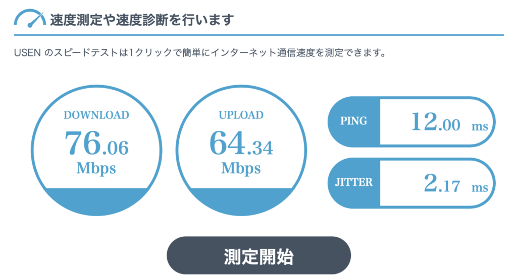 - 共用ラウンジ:下り76Mbps / 上り64Mbps(終始安定)