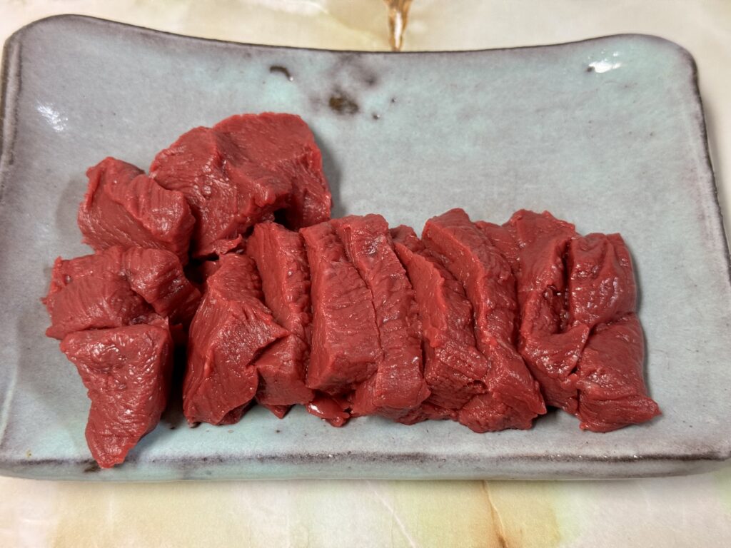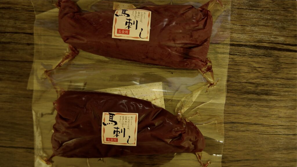 ショーケースに並ぶ新鮮な肉の中から、馬刺しのブロックを購入しました。(値段は変わるがカットもしてくれます)