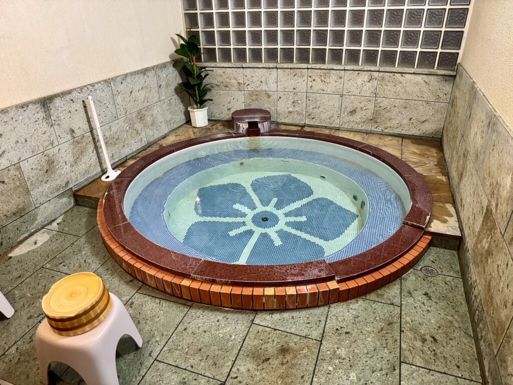 ジェットと寝湯と温度帯が異なる浴槽が並んでいて、全て源泉かけ流しでした。