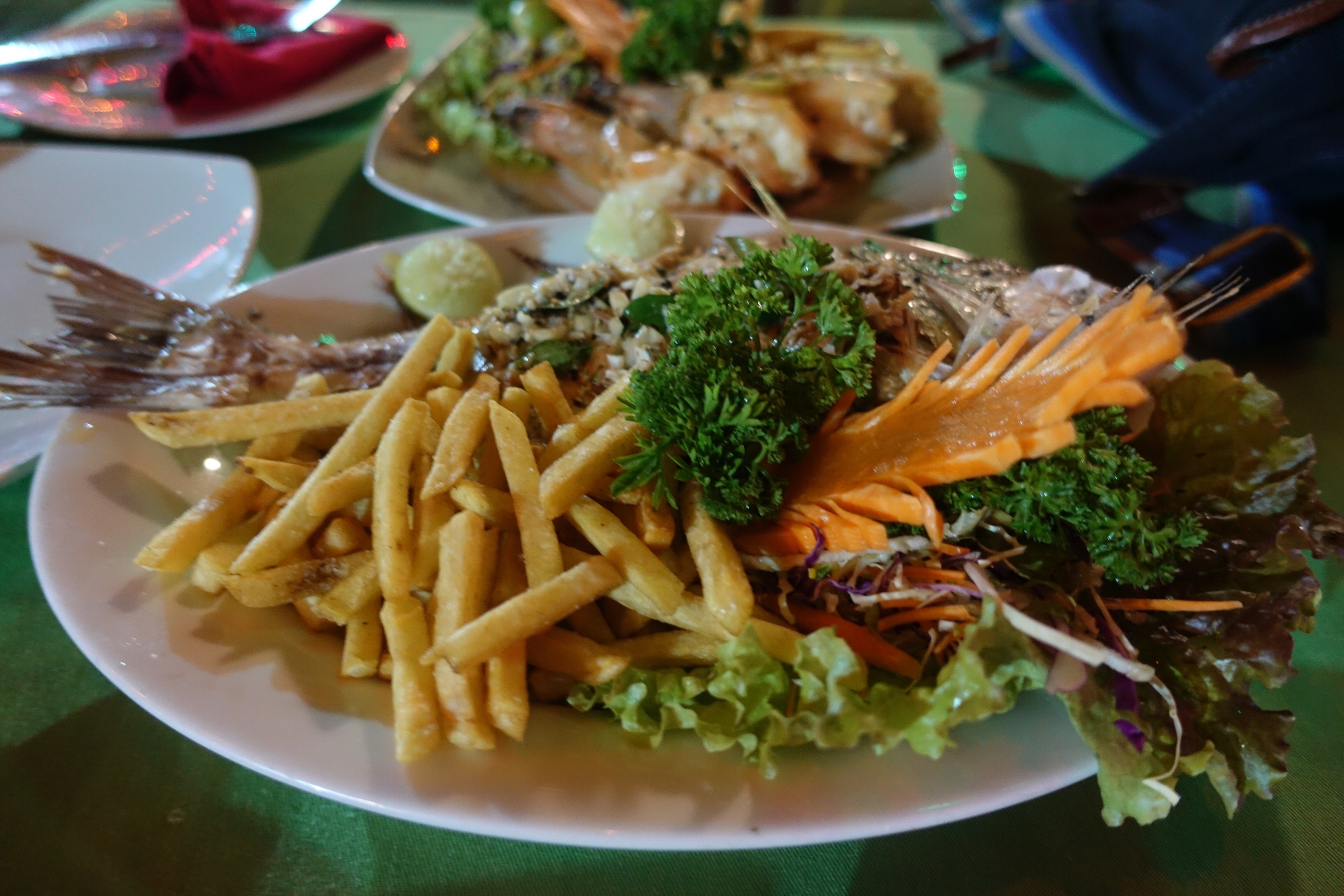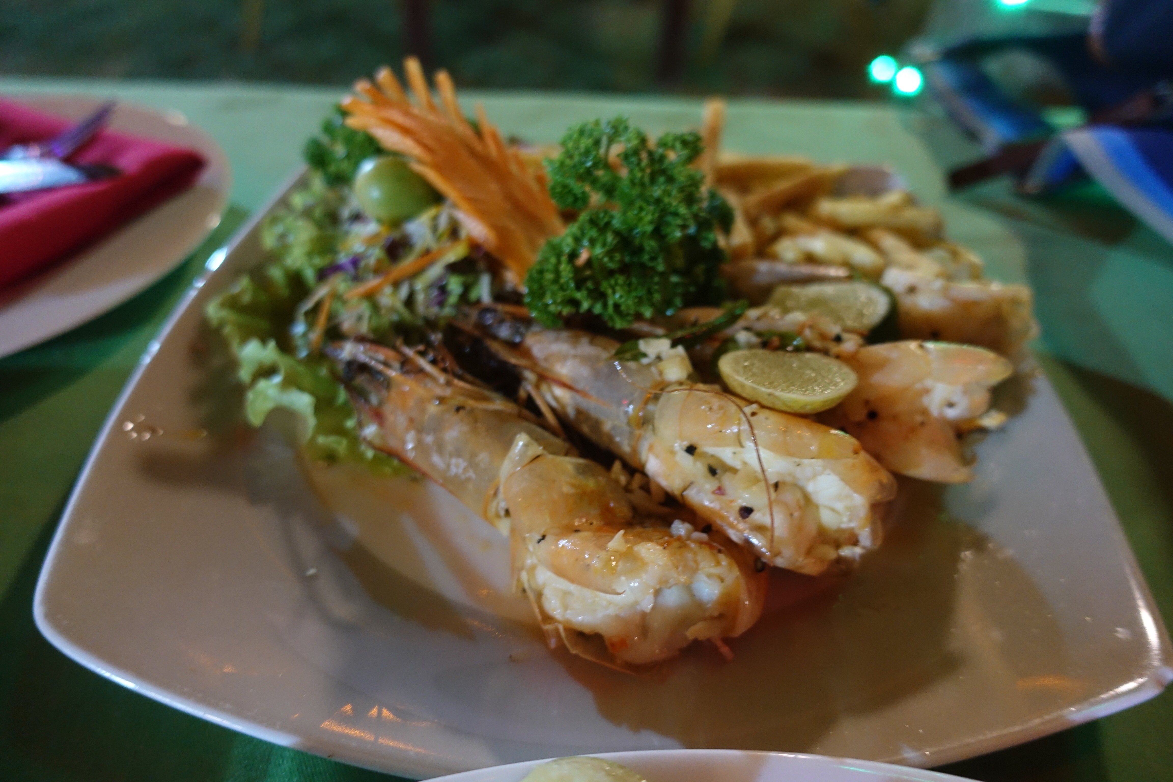 屋内かビーチの席を選べたのでビーチを選ぶ。が野良犬はいるし、謎の少年達がクリスマスソングを歌いながらチップの求めてくるので落ち着いて食事をするならば屋内の方が良いと思った。