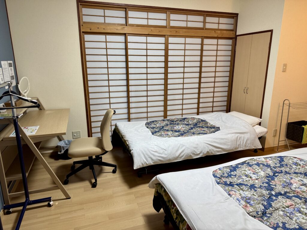 宿を選んだ理由は、宿泊費の安さと作業環境の良さ、そして温泉が近くにあること。